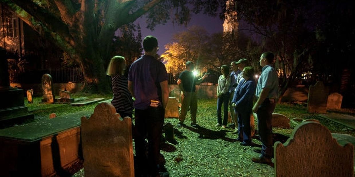 Come and walk with us when the sun goes down. The Charleston Ghost and Graveyard Tour gives you an exclusive opportunity to walk inside the gates of one of Charleston's oldest graveyards after dark. When all the other walking tours are looking in through the wrought iron fence, you'll be on the inside. Explore the graveyard's dark corners, closely inspect the headstones to see what you might learn, and take a moment to step across the graves - if you dare.Learn about the history of Charleston's graveyards, and hear the stories of the famous individuals who found their final resting place in the Holy City. You've heard the spooky Charleston ghost stories, right? Well, now you can experience them on this up-close-and-personal tour that takes you where others won't. Graveyards are endearing pockets of Charleston - so much so that they are often referred to here as simply "gardens." We love them - they're full of history, intrigue, and tales of love and loss.Hear about Charleston's spirits and gruesome tales: