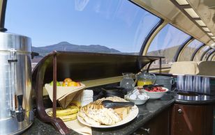 We are chartering the 2 grandest cars in the fleet! The first, a double decker - has a full-length dome up top and a spacious lounge below. The second - a plush parlor car with a rear platform, private bar service and snacks.